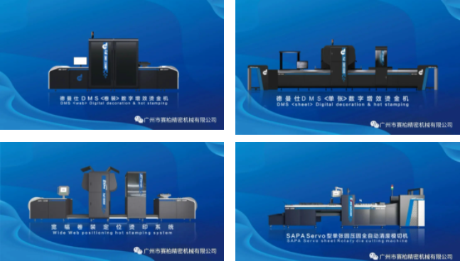 作為一家專業(yè)、專注于高端數(shù)字增效整飾技術(shù)及系統(tǒng)解決方案的提供商,攜帶本公司的創(chuàng)新 “數(shù)字增效燙印技術(shù)解決方案”參加此次盛會(huì),現(xiàn)場(chǎng)展示的設(shè)備有:DMS卷裝數(shù)字增效燙金機(jī)、DMS單張數(shù)字增效燙金機(jī)、SAPA Servo型單張圓壓圓全自動(dòng)清廢模切機(jī),給觀眾帶來了美輪美奐的視覺盛宴。